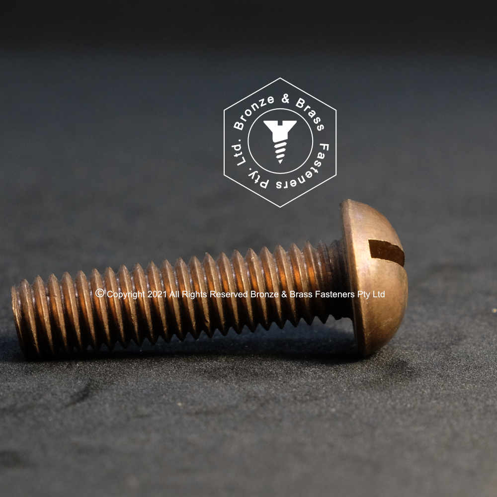 A round head metal thread machine screw with a traditional slot drive, that can either fastened with a nut and washer or into a female thread or component.